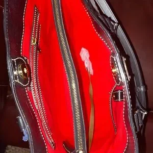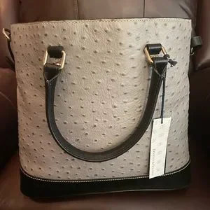 Dooney & Bourke medium size tote. Gray leather w/black trim.