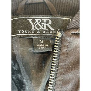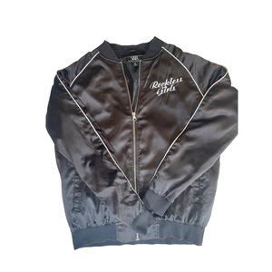 Y&R "Reckless Girls" Women's Black Embroidered Satin Bomber Jacket Black Sz S