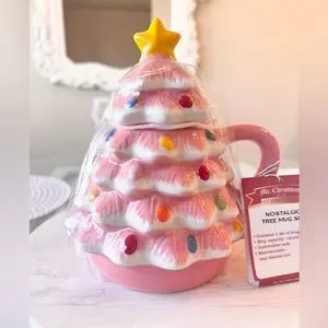 Brand new with tags bubblegum pink nostalgic Mr. Christmas mug shaped as beautiful tree with multi-colored lights and star topper lid. 3D Figural. This mug is even more gorgeous in person! ✨