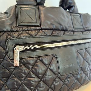 Chanel cocoon large black quilted nylon tote leather details 100% authentic