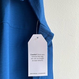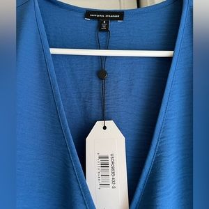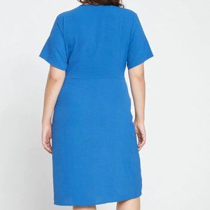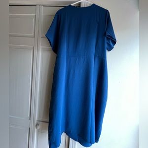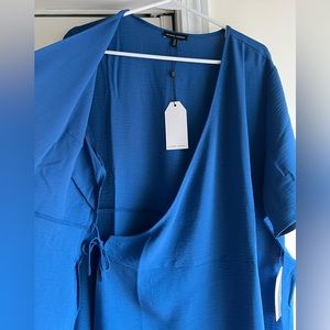 Brand new wrap dress. with tags. Universal Standard size small (14-16). royal blue. short sleeve. flowy light crinkle crepe fabric. v-neck. interior and exterior ties. easy stylish. can be dressed up or down. day to night style.