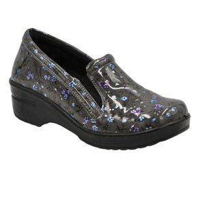 Easy Works by Easy Street Leeza Clogs Blue Purple Floral Slip Resistant Size 6.5