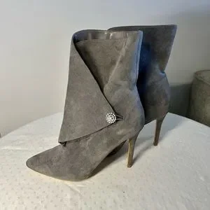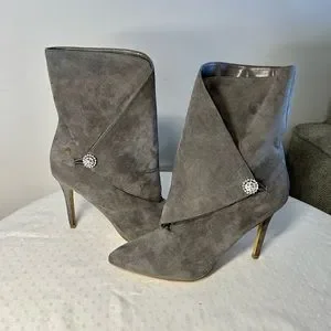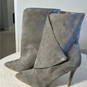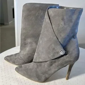 New without box. Charles by Charles David faux suede gray asymmetrical wrapped stiletto booties with crystal button closure. Size 8.5 never worn beautiful boots.