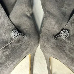 Charles by Charles David Faux Suede Grey Booties with Crystal Pendant Size 8.5 with asymmetrical closure. Stunning boots! BRAND NEW *VERY RARE BOOTS*; BNWOB, RETAIL $180.00