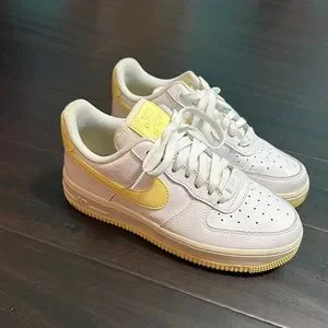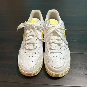 Nike Air Force 1 shoes. White with yellow detailing. Purchased at the Nike outlet.