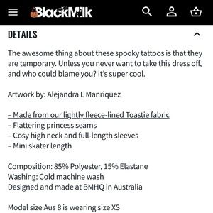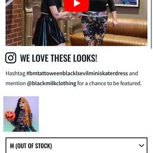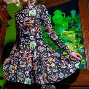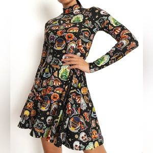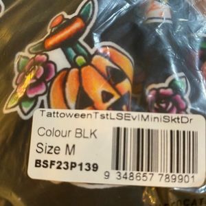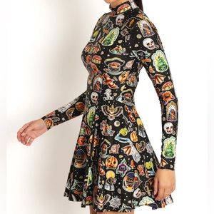 Blackmilk “TATTOWEEN BLACK LONG SLEEVE EVIL MINI SKATER DRESS” Size Medium M NWT