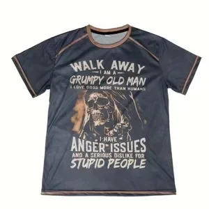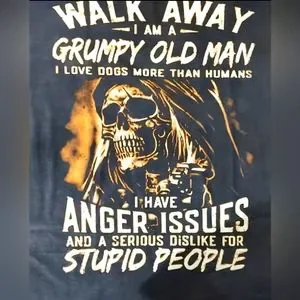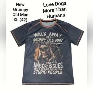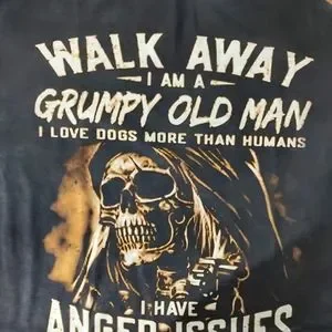 Show off your love for your furry friends with this funny and unique t-shirt featuring the message "Walk Away I Am A Grumpy Old Man I Love Dogs More Than Humans". Under the skull it reads: " I Have Anger Issues and A Serious Dislike for Stupid People"