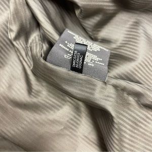 Dockers zip up light jacket. Amazing cognac tan brown colour. Fabric suede like apparence. 2 pockets on the front side closing with clip buttons. Fully lined. Clip buttoned cuffs. Like new condition, no flaws.
