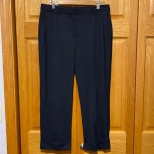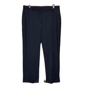 Theory Heze Contour 100% virgin Wool navy blue cropped cuffed hem light pants 10