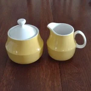 Vintage Mikasa Cera-Stone Sandra Creamer Sugar Bowl Set