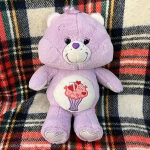 This Care Bears Share Bear plush toy is a must-have for collectors and fans alike. With its adorable purple color and 13-inch size, it's perfect for all occasions. The toy features a milkshake and is recommended for children aged 2 and up. The bear is a contemporary 1990-now design and was manufactured in 2019.