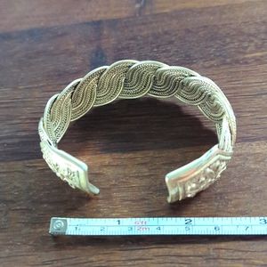 Antique hallmarked silver cuff bracelet with braided "s" and floral designs.