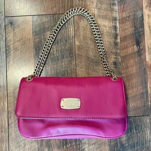 MICHAEL KORS Jet Set Chain Leather Flap Shoulder Bag Raspberry