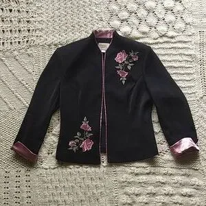 Turn heads with this beautifully tailored blazer with gorgeous roses embroidered across the front!