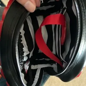 Super Cute! Can be used as make up bag or small wrist bag with strap.