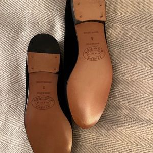 Questions? Leave a comment below! Silver diamond on black velvet leather sole smoking flats. No tag or box. Unused