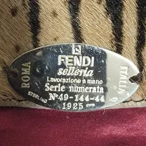 The "label" in this jacket is a Sterling Silver oval which reads "FENDI selleria - Lavorazione a mano - Serie Numerata No 49-144-44 - Sterling 1925"