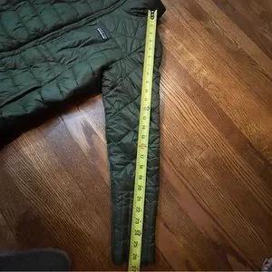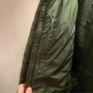 Beautiful jacket in excellent condition!! Slight imperfection covered with a patch on the back of the right tricep. Nearly blends in! Measurements in the photos. Gorgeous olive color.