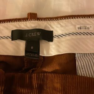 A tan brown colored corduroy cropped trouser. Size 8. Mid rise with pockets on either side that are fully sippable. These are in excellent condition and are a perfect staple to the Salle wardrobe.