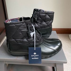 SPERRY Women 85529 Plaid Lined Waterproof Saltwater Quilted Duck Boots NEW NWOB