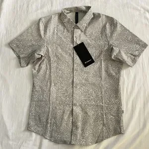 With a multicolor print pattern and accents such as buttons and pocket, this shirt exudes a chic and vintage vibe, yet with a touch of modernity. Whether you're skiing in the winter or partying in the summer, this shirt is perfect for you. The Lululemon Airing Easy SS Short Sleeve Shirt comes in size S and is part of the Lululemon product line.