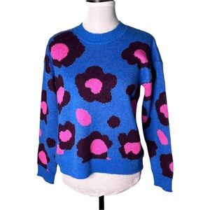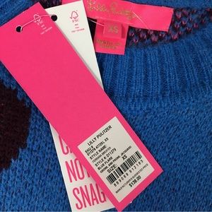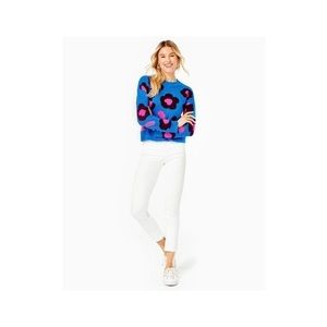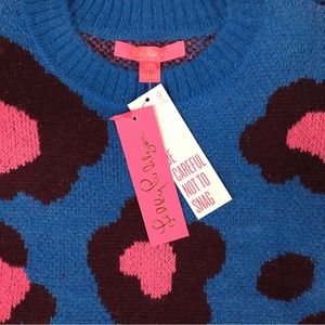 Lilly Pulitzer Ferrara Sweater Blue Flare Growl and Prowl Jacquard Print Size XS