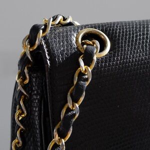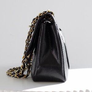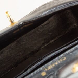 Chanel Vintage Small Classic Flap Exotic Lizard Leather 24K Gold CC Black Bag