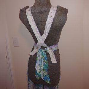 I've seen a lot of aprons over my reselling years but this one is definitely the prettiest. It's such a flattering style too. I would think it could compliment a dress rather than use as an actual apron but maybe that's just me. Nice long length. Criss cross straps.