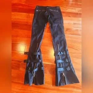 Frankie B emo rocker pants from early 2000's. SUPER LOW Rise, XXS fits someone who is a 000, VERY SMALL fit.