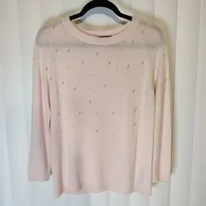 This light weight sweater has pearl bead detailing on the front. In excellent condition. Women's Size small.