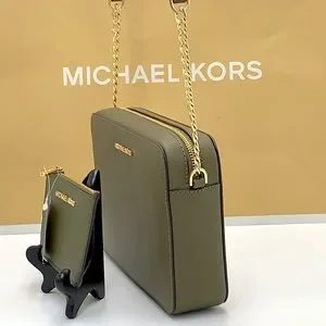 MICHAEL KORS LARGE EAST WEST CROSSBODY & Top Zip Coinpouch With ID Card OLIVE