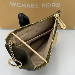 NWT authentic Michael Kors Jet Set Travel Small Top Zip CoinPouch With ID Leather Olive 5” X 3.3”