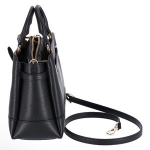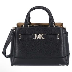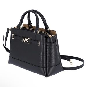 Michael Kors Reed Small Center Zip Logo Belted Satchel Crossbody Black Leather