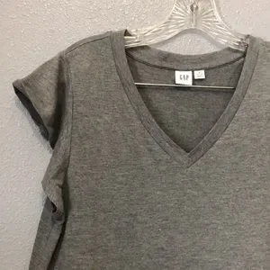 GAP dress Women's M light heather gray cap sleeve tiered knit v neck petite EUC