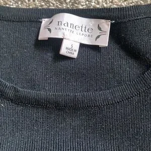 Nanette LaPore sweater dress black sz S fit n flair lace detailed hem 3/4 sleeve
