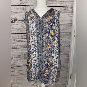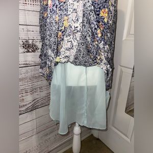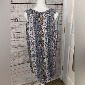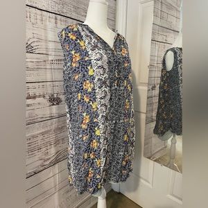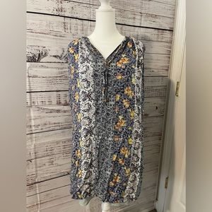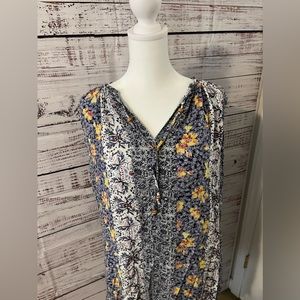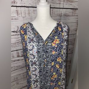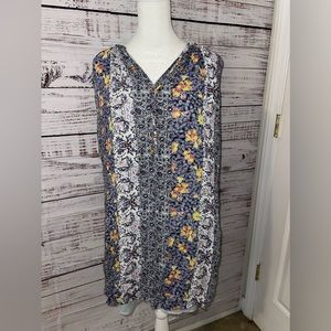 Excellent preowned condition! Beautiful mixed/multi color floral print. Size women’s petite! Fully lined underneath. There are tie strings at the neck line with wooden beads, can be worn tied or left undone.