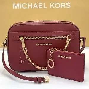 MICHAEL KORS LARGE EW ZIP CHAIN CROSSBODY DARK CHERRY & SM TZ COINPOUCH MULBERR