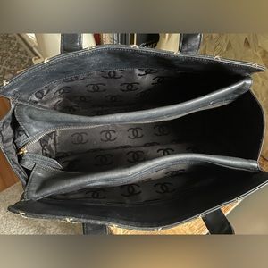 This is a vintage Chanel calfskin leather tote or handbag with wild stitch to help this bag to pop. She shows some signs of wear but there are no rips or tears, the zippers work, and the corners look good. There are three compartments and will hold a lot. Please see pics, she comes with COA card.