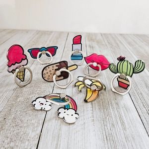 2" Cute Enamel Cellphone Mobile Ring Stands Holders with 360 Degree Ring Rotation. Phone Attachments by 3M for Iphone or Android. Makes a great holiday Christmas gift or stocking stuffer. Pick your favorites!