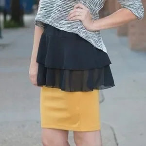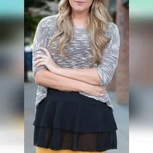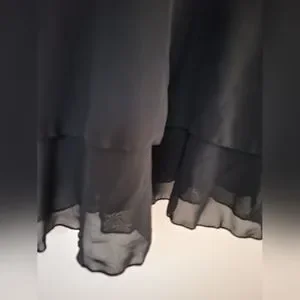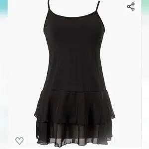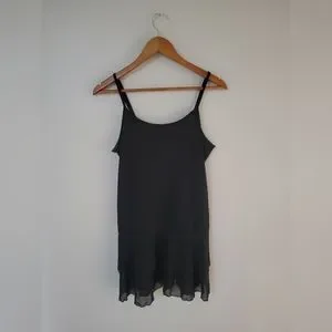 Black tunic-length camisole. Bottom has two layers of chiffon that ruffles out slightly. Adjustable straps. Great for layering.