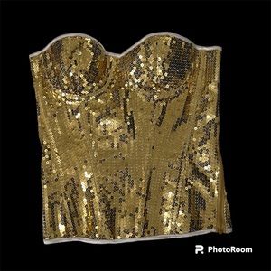 For sale is one women’s gold sequin corset by Daisy Corsets.