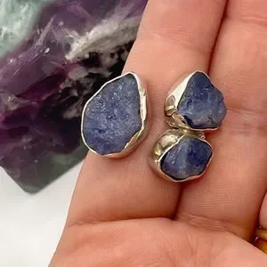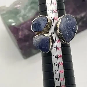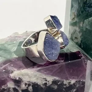 Sterling Silver Raw Amethyst Ring Chunky Triple Stone