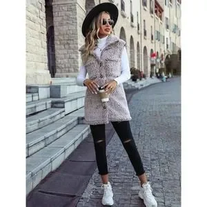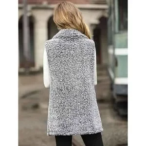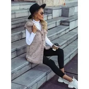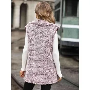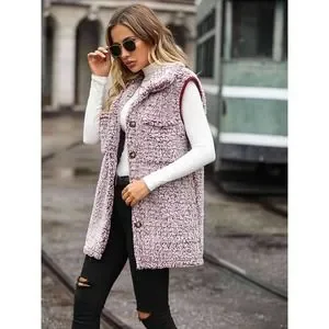 Button Down Collared Neck Long Teddy Sherpa Like Sherling Vest Jacket in Dusty Pink