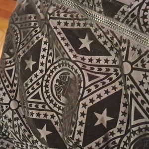 Born Fly jacket with velvet areas. There's a rip under the arm that can be mended. See picture. 100% polyester. Coat is still in great condition.