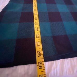 This sweater is a mock turtleneck with 3/4 length sleeves. It is a versatile piece that can be worn with slacks for the office or jeans for a casual look. Green and black plaid. Good used condition with no visible flaws. Please see photos for approximate measurements. Comes from a non-smoking, dog loving home.