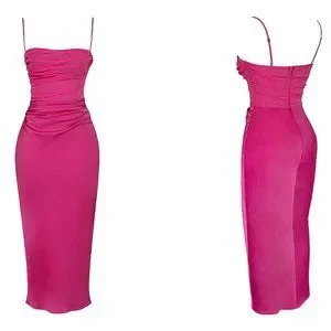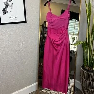 House of CB 'Teia' Hot Pink Draped Corset Midi Dress NWOT