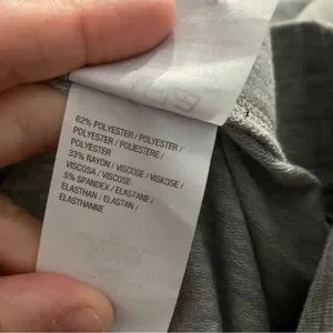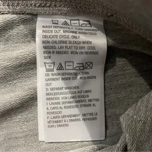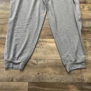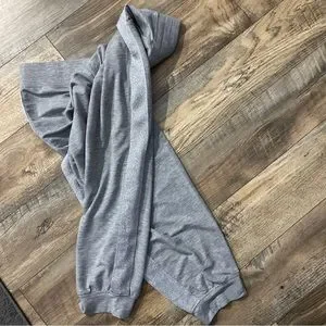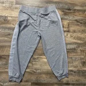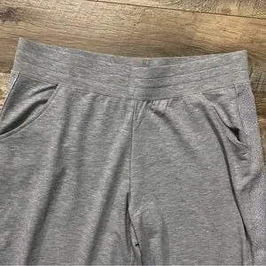 Gray with fun metallic stripe down side. Pockets in the front. Excellent condition!