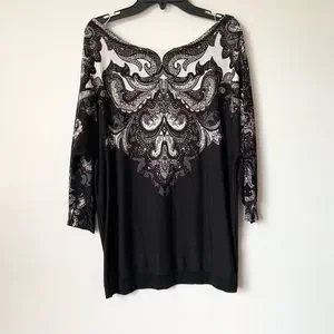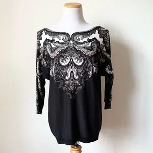 LAST CHANCE WHITE HOUSE BLACK MARKET Lightweight Scroll Design Sweater Small