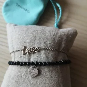 Tiffany's black onyx bracelet. Slight tarnish on the return to Tiffany's heart which is reflected in the discounted price compared to other Poshers.