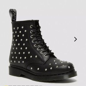 Size 5 NWOT For the DM’s hardcore. These boots are punched with silver conical studs — paying tribute to Docs wearers who’ve been studding their footwear for decades. Built from Wanama, a refined, premium leather with a satin-like sheen, the studded boots are reinforced with tonal welt stitching and a scripted AirWair heel loop.